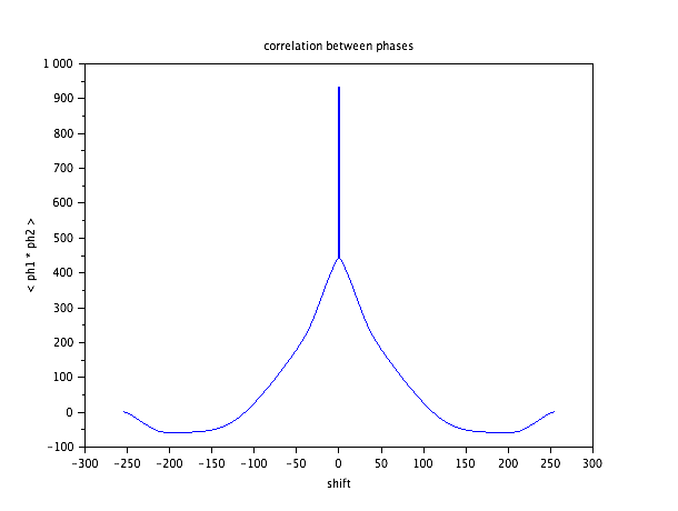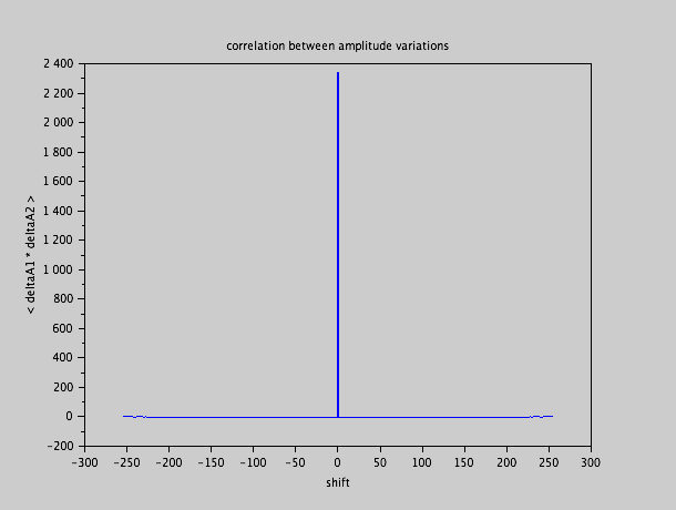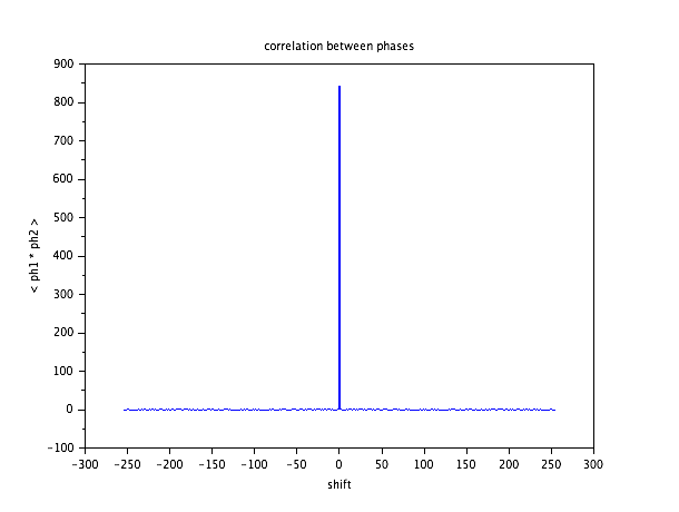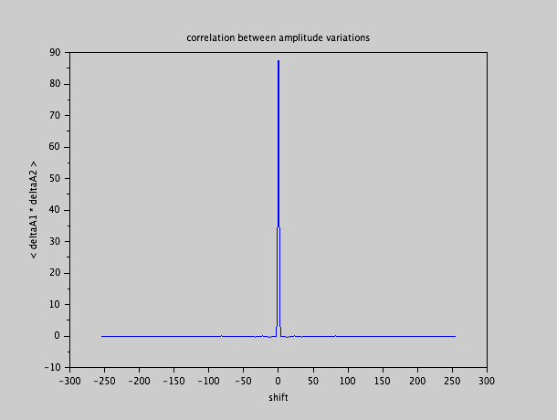 As we can clearly see, this correlation function shows a strong correlation of phase deviations within a narrow peak. But the long range correlations are absent.