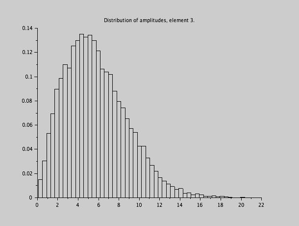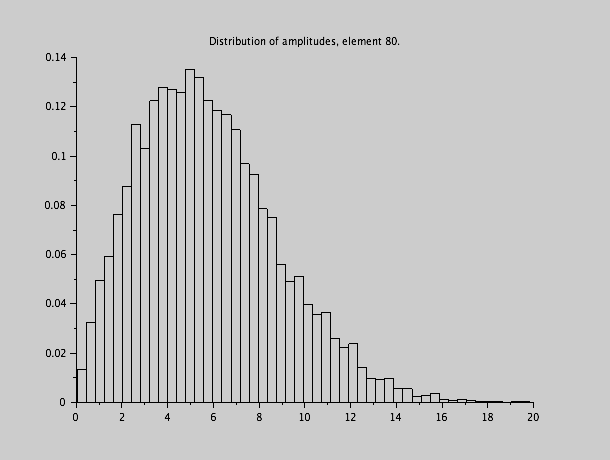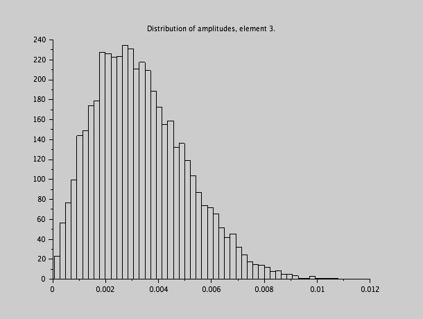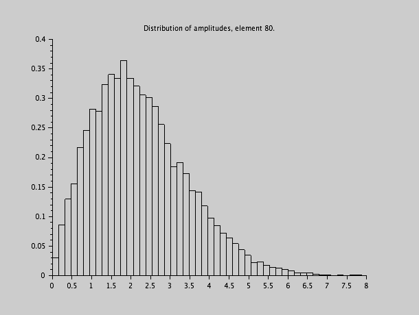 The histogram of the amplitude distribution of the 80th and the 3rd frequency component is shown.